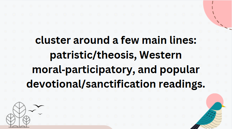 – Modern Orthodox interpreters (e.g., the Orthodox Study Bible note) stress that the verse grounds theosis—union with God’s life and holiness—“not that we become divine by nature,” but by grace and participation.[4]