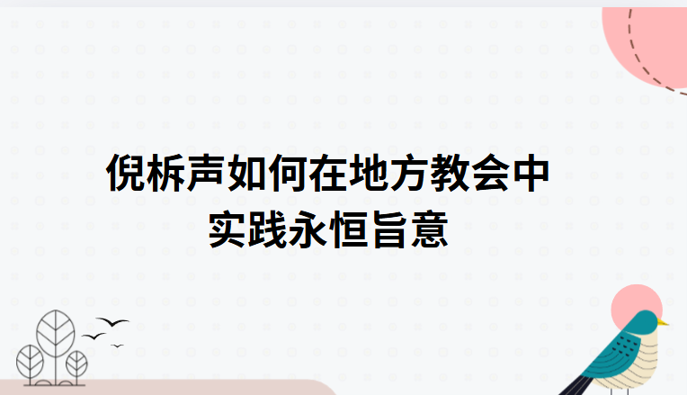 ## 一、用地方教会承载“基督+教会”的永恒旨意