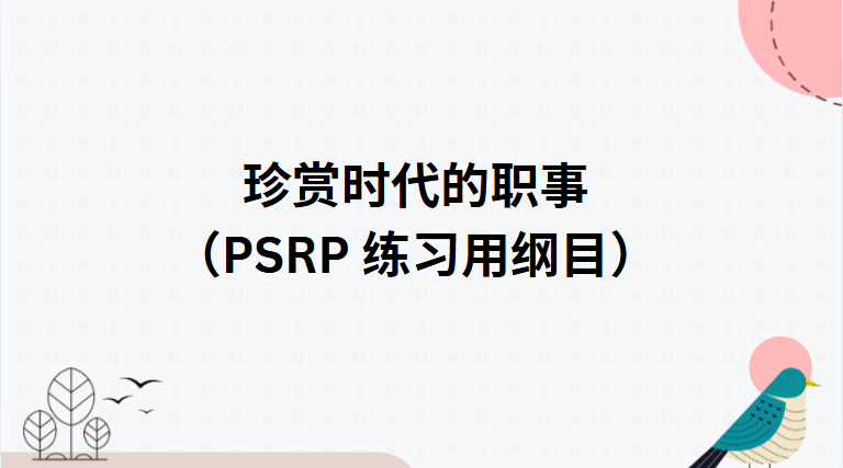 **珍赏时代的职事(PSRP 练习用纲目)**