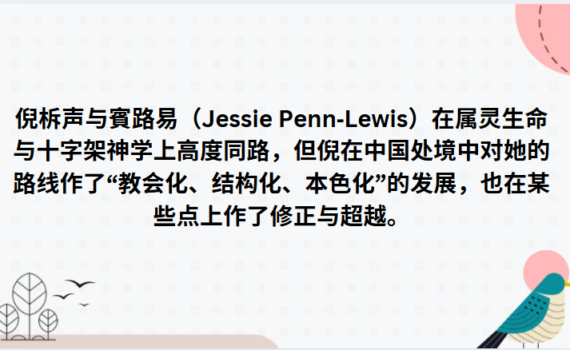 倪柝声与賓路易(Jessie Penn‑Lewis)在属灵生命与十字架神学上高度同路,但倪在中国处境 […]