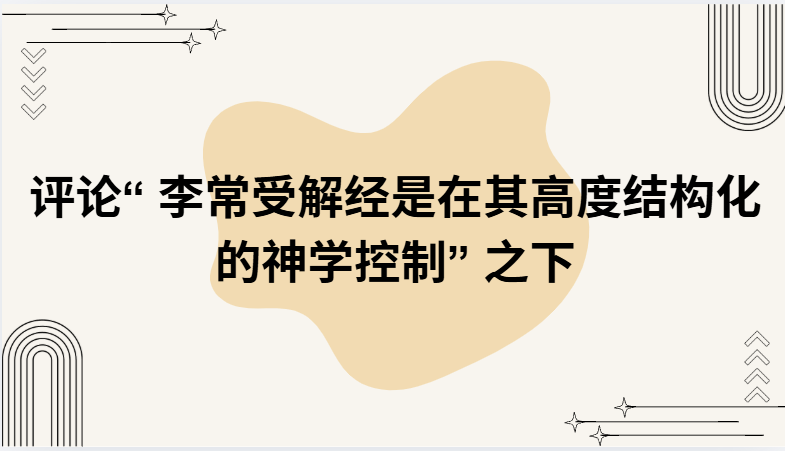 – “李常受的解经基本在其预设的‘神圣经纶’框架下运作,经文多被迅速纳入一条‘神分赐自己、使人在生命性情上成为神并构成团体神人’的叙事结构之中,因而呈现明显的自上而下之神学控制。”[5][2][1]