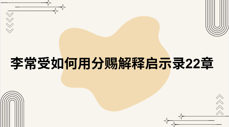 在李常受的解读里,启示录 22 章几乎是“分赐神学”的终点图:父神和羔羊在一个宝座上,流出生命水的河(那灵),边上有生命树(基督),在新耶路撒冷里不断供应、分赐神自己给得赎者,直到永远。[1][2][3]