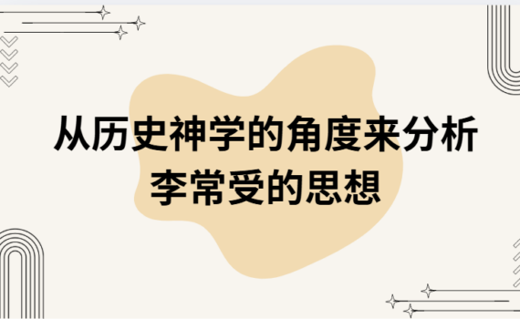 下面从历史神学(Historical Theology)的角度,对李常受(Witness Lee)的 […]