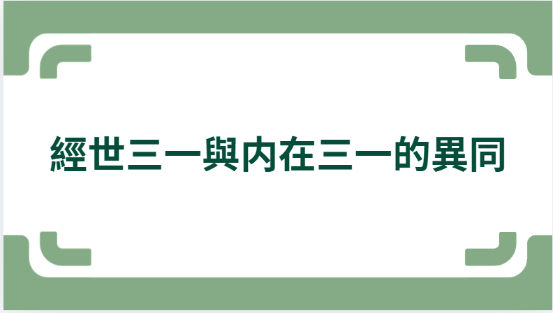 無論談經世或内在,都是在說同一位聖父、聖子、聖靈,