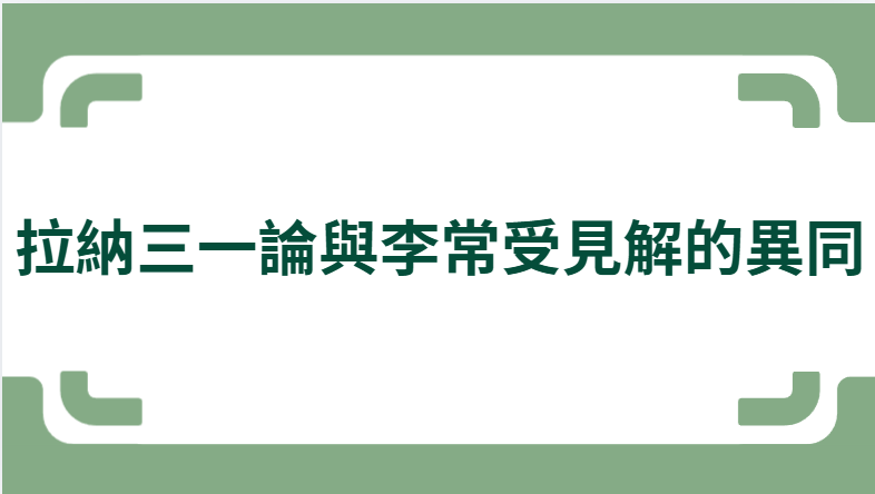 拉納的三一論與李常受對三一神、特別是「經綸三一」的講法,在「關心點」上有交集,但在出發點、用語與邊界上有明顯差異,也存在潛在的張力。[1][2][3][4][5][6][7]