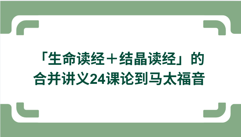 下面是「生命读经+结晶读经」合并讲义,论到马太福音,共 24 课,每课都兼顾: