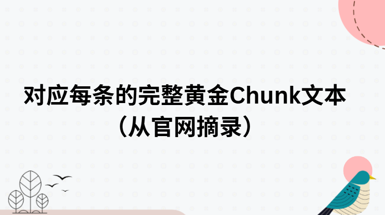 这些Chunk可直接作为您的RAG评估“黄金上下文”,放入向量库时建议以小标题为metadata。