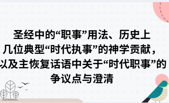 圣经里的“职事”用法、历史中几位典型“时代执事”的神学贡献,以及主恢复内部关于“时代职事”的争议点与 […]