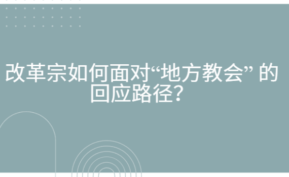 地方教会整体上既不认同TULIP式的加尔文主义体系,也不会简单站在亚米念一边,而是从“基督作恩典的活 […]