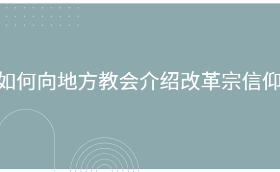 向地方教会介绍改革宗,关键不是先讲体系,而是先从他们熟悉的“神的经纶—生命—召会”语言出发,帮助他们 […]