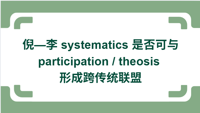 | 维度 | 西方 participation | 倪—李另类 systematics |