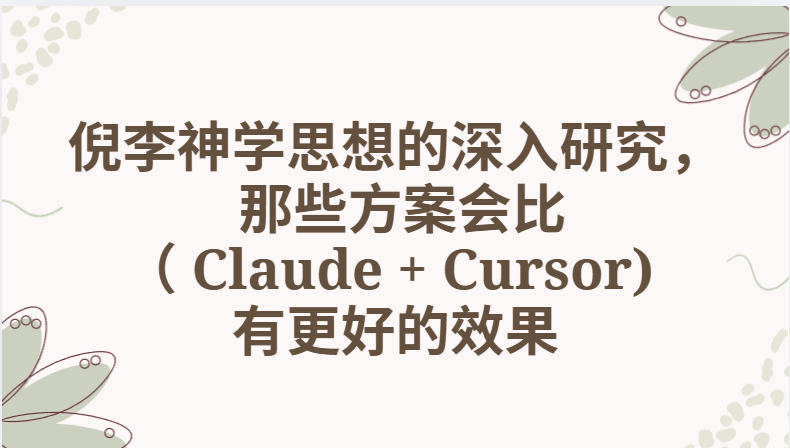 对于神学研究,尤其是 倪李体系这种高度结构化思想,有几种方案会明显更强。