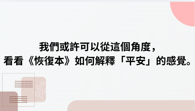 在《恢復本》的解釋下,平安不是求來的,而是**「活出來」**