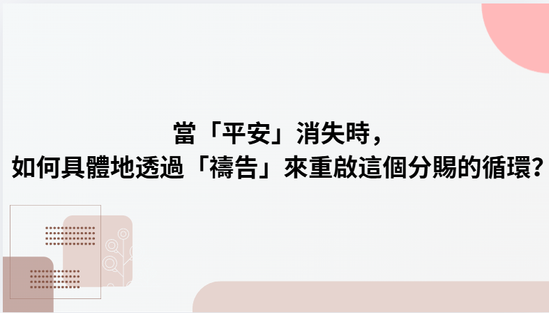 當平安消失,心靈通常充滿雜音或焦慮。