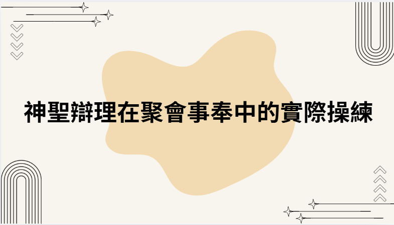 聚会中神圣辩理的实际流出,不是技巧的问题,根本是**