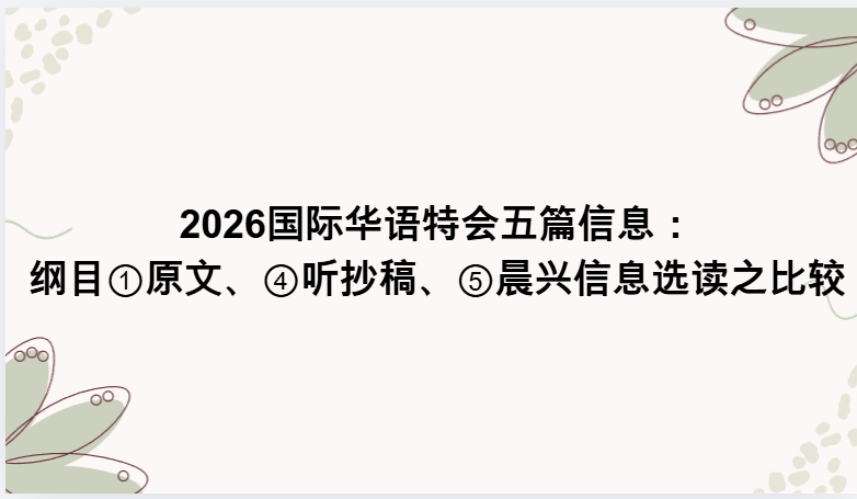 2026国际华语特会五篇信息:纲目①原文、④听抄稿、⑤晨兴信息选读之比较