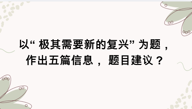 以下是以倪李信息的框架与神学体系,为2026年国殇节特会总题**“极其需要新的复兴”**所拟定的五篇信息题目建议,附以内容说明:
