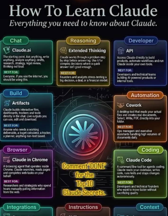 Artifacts, this is the ultimate roadmap to mastering the most sophisticated AI model available right now. ​Whether you’re a founder stress-testing a financial model with Extended Thinking or a developer automating workflows via API, this guide breaks down exactly which tool to use for every task. ​Save this roadmap so you never have to guess which feature you need! 📌 ​Want to go deeper? I’ve put together the ultimate “AI Mastery” toolkit for 2026
