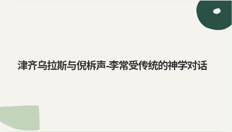 津齐乌拉斯能否成为倪柝声-李常受传统进入东正教神学语境的桥梁——同时,倪柝声-李常受传统能否向津齐乌拉斯提供他自己神学中未被充分发展的内容