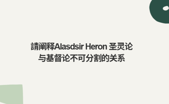 Alasdair I. C. Heron 在其圣灵论研究中反复强调一个核心命题: 圣灵论(Pneum […]