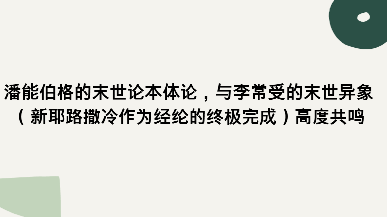 潘能伯格的末世论本体论与李常受的新耶路撒冷异象