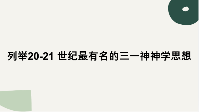 • 20世紀前期:巴特與拉納奠基,恢復三一的中心地位,反對自由主義的邊緣化。
