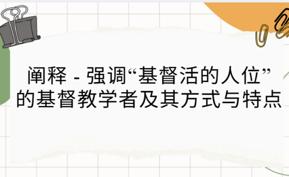 在近现代基督论中,有一批神学家特别强调“基督是今日向人临在、与人相遇的活的人位”,而不是仅仅作为观念 […]