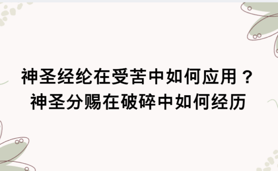 神圣经纶在受苦中的应用:神圣分赐在破碎中的经历 一、问题的重量 这不是一个纯粹学术的神学问题。 在我 […]