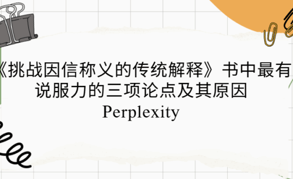 书中最有说服力的三项论点及其原因如下:[1][2][3][4][5] ### 1. 因信称义的根基是 […] Learning 《挑战因信称义的传统解释》书中最有说服力的三项论点及其原因——Perplexity